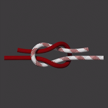 바른매듭이라고도 불립니다. 한 줄로 묶는 경우가 많은데, 바로 태권도 띠 묶을때, 응급처치 시 삼각건 묶을 쓰는 매듭입니다.