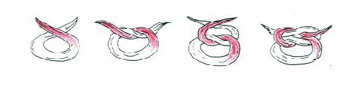 이 매듭의 장점은 꽉 조여져도 비교적 풀기 쉽다 입니다. 한쪽줄을 반대쪽으로 강하게 당기고 반대쪽 줄을 당기면 쉽게 매듭이 풀어집니다. 보자기 묶으실때, 비닐 봉지 묶으실때 사용하시면 풀기 쉽습니다.