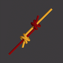 두께가 다른 두 로프를 연결 할 때 사용합니다. 형태는 사각 매듭과 유사하나 마지막 working end가 자기 로프 standing part 뒤쪽으로 감깁니다.
