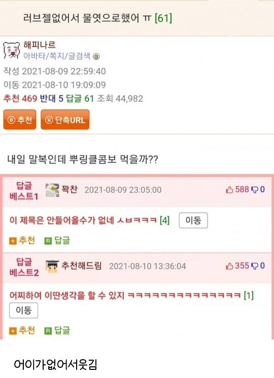 작성자솜솜사탕 작성시간 23.09.14 물엿은 진짜 어그로 하나는 올타임 레전드라고 봐도 무방할듯 볼때마다 알면서 들어오게됨;