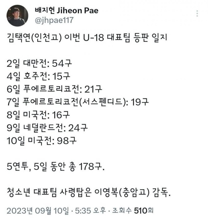 휴식없이 불펜연투도 문제인데 텀 없이 바로 선발까지 98구? 이렇게 갈린 고교투수가 프로 오자마자 수술받고, 이후 프로생명 아작난 케이스가 한둘이 아닌데 아직도 저러고 있음