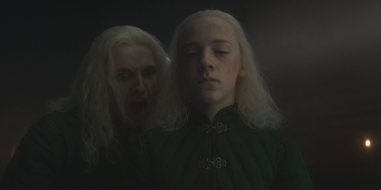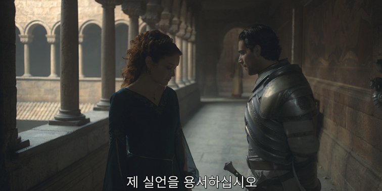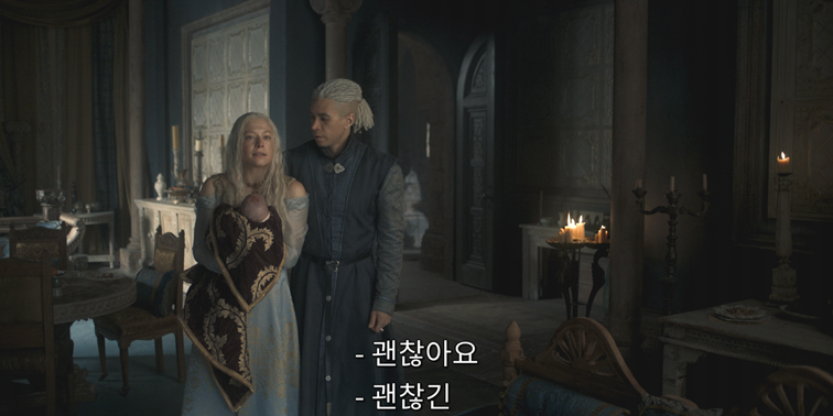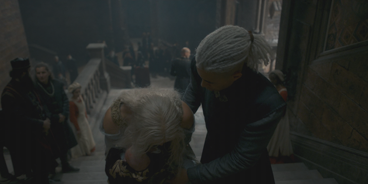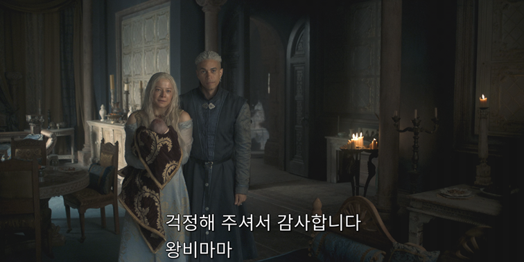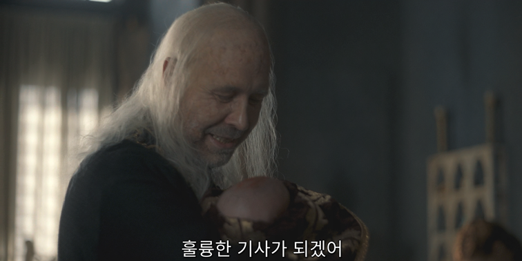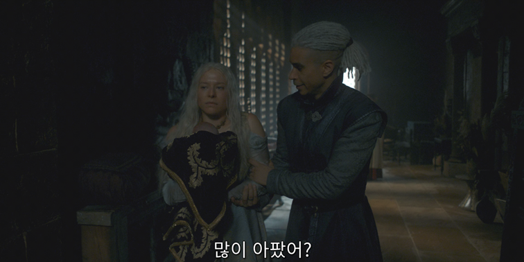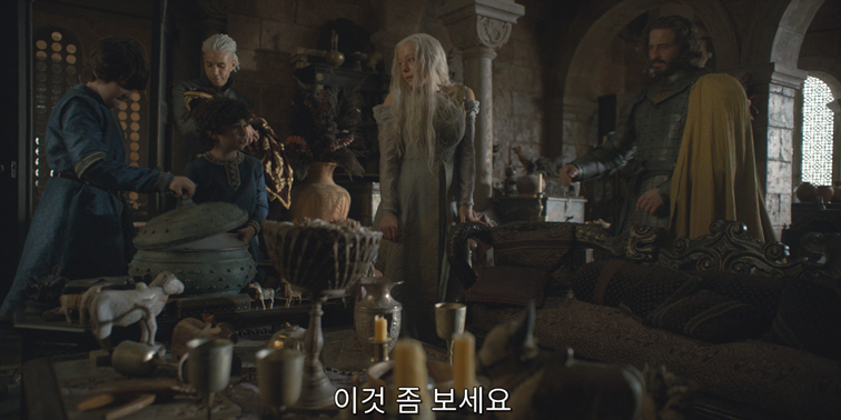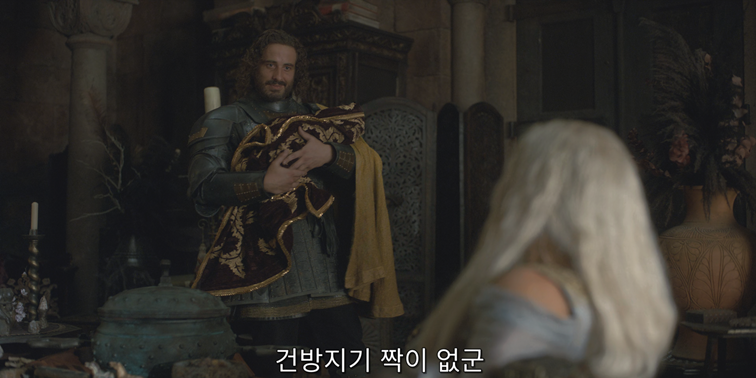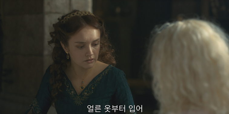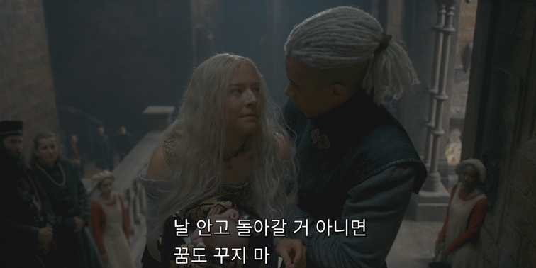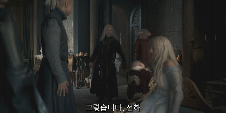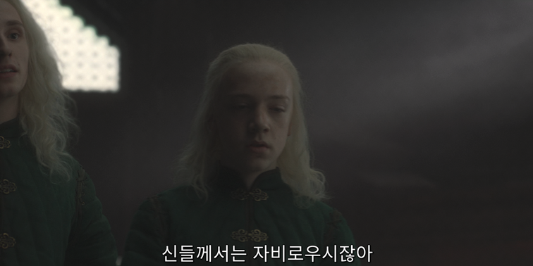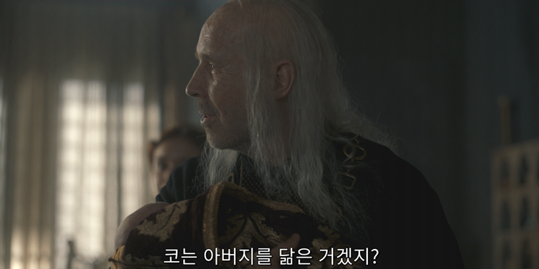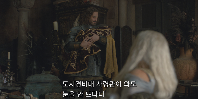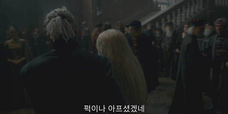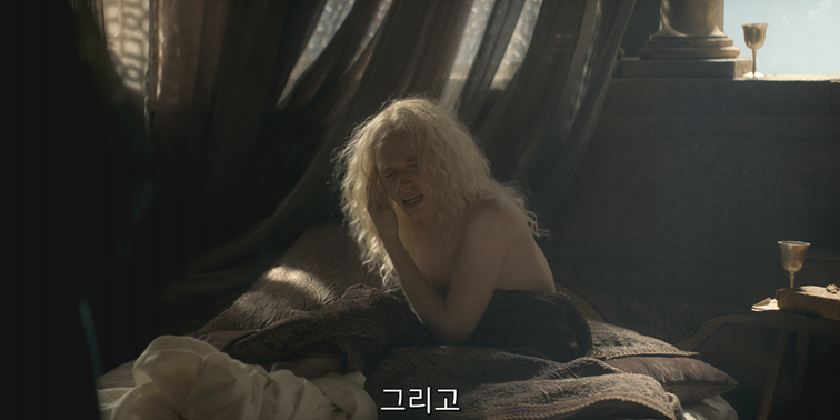 알리센트는 곧 자신의 행동이 과격했다는 걸 느꼈는지 아에곤의 머리를 어루만지는데요