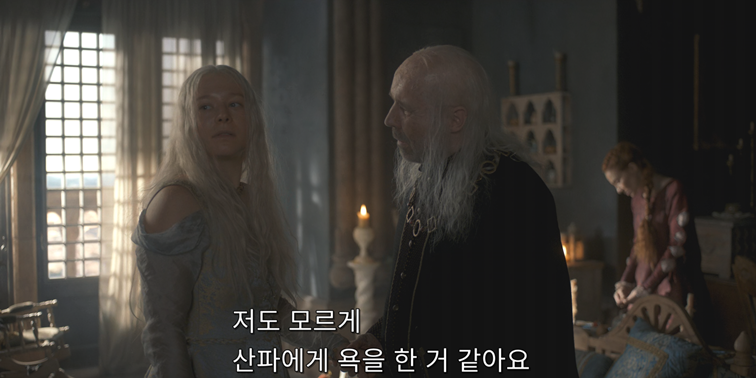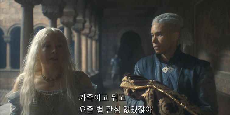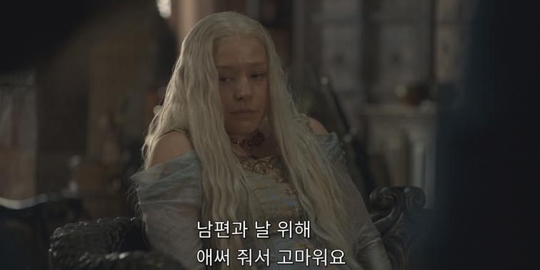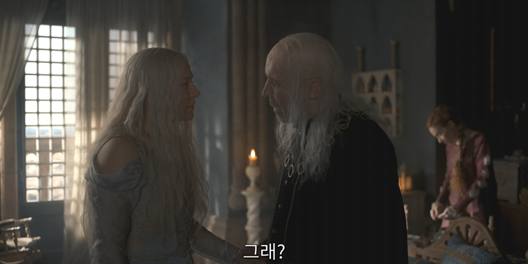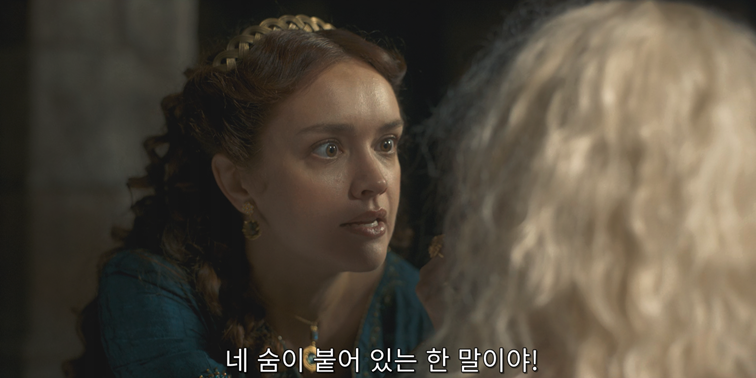 라에니라도 그런 알리센트의 속셈을 잘 알고 있었기에 불안한 기색을 감추지 못합니다