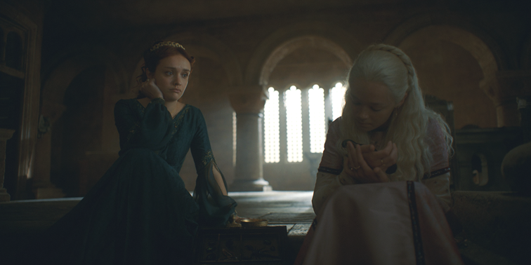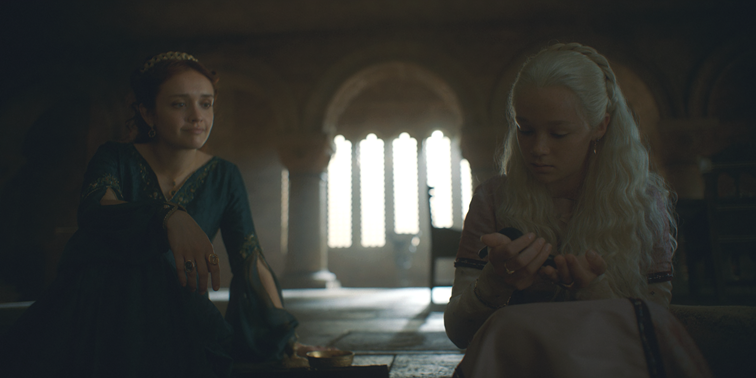 라에니라와 라에노르의 머리색은 모두 발리리아 혈통 특유의 은색 머리인 반면