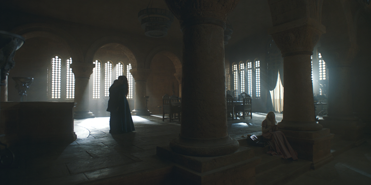 알리센트는 오늘 있었던 일들을 비세리스에게 고하며 라에니라 아이들의 흉을 보고 있습니다