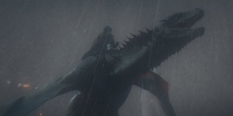 바로 그때, 루크의 뒤에서 스톰스 엔드를 울리는 거대한 포효 소리가 울려퍼지는데