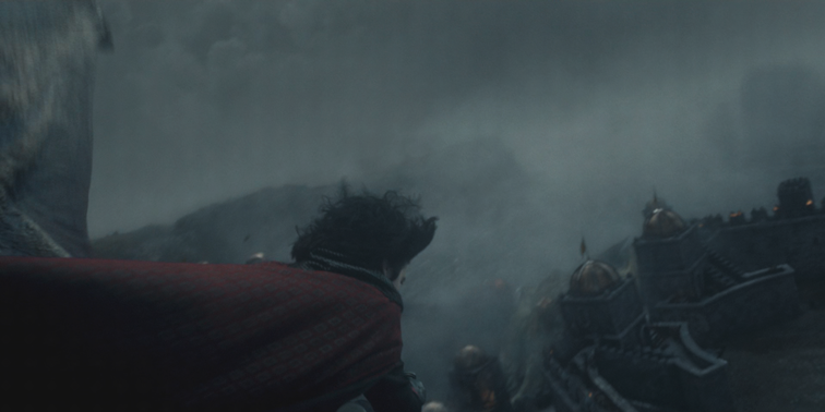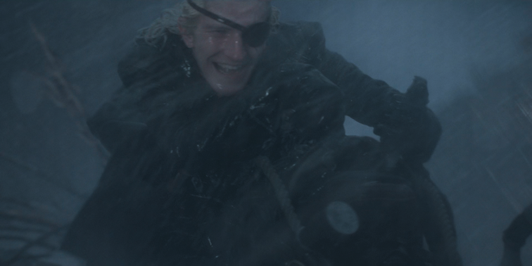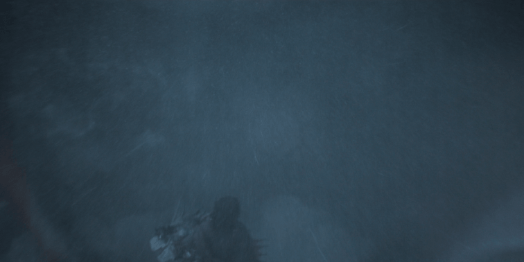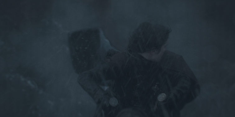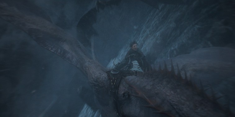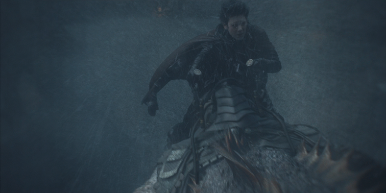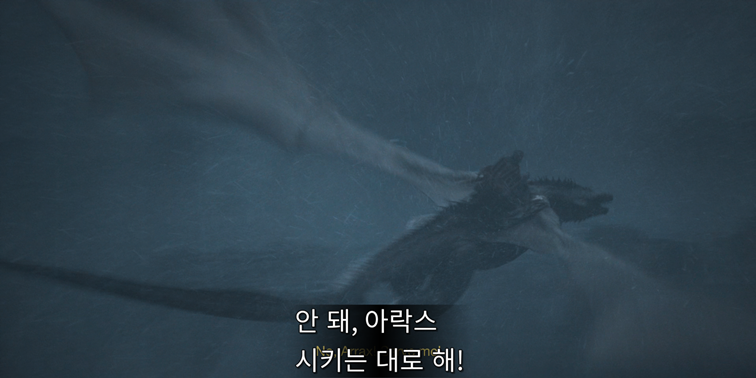 아락스를 탄 루크가 거센 바람을 뚫고 스톰스 엔드에 입성합니다