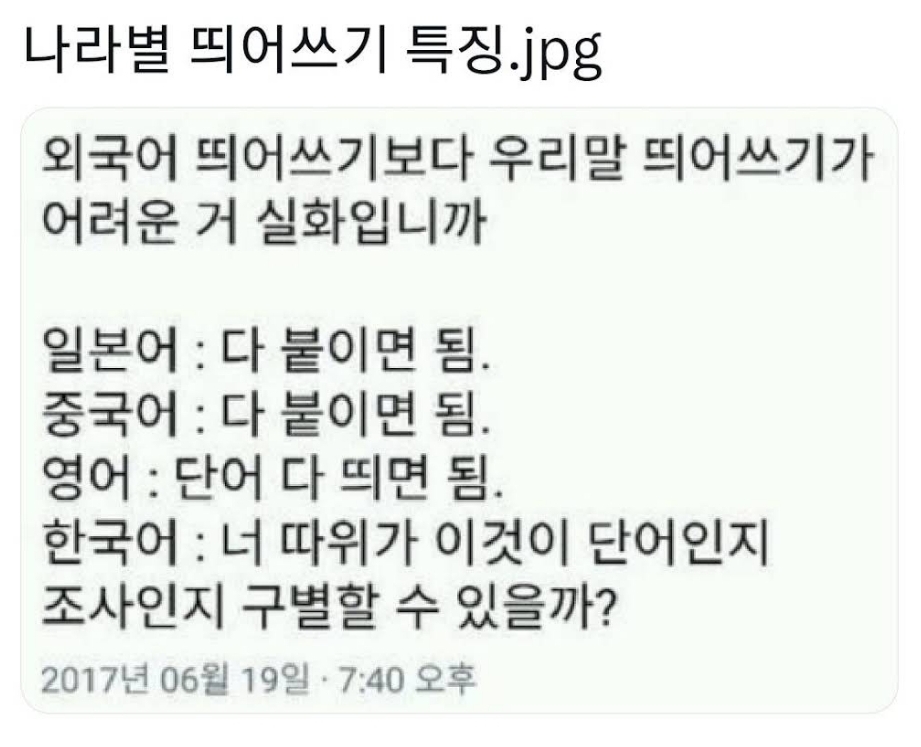 작성시간 23.11.28 한글은 진짜 잘 만들고 쉬운 문자인데 한국어는 개역대급 지랄임