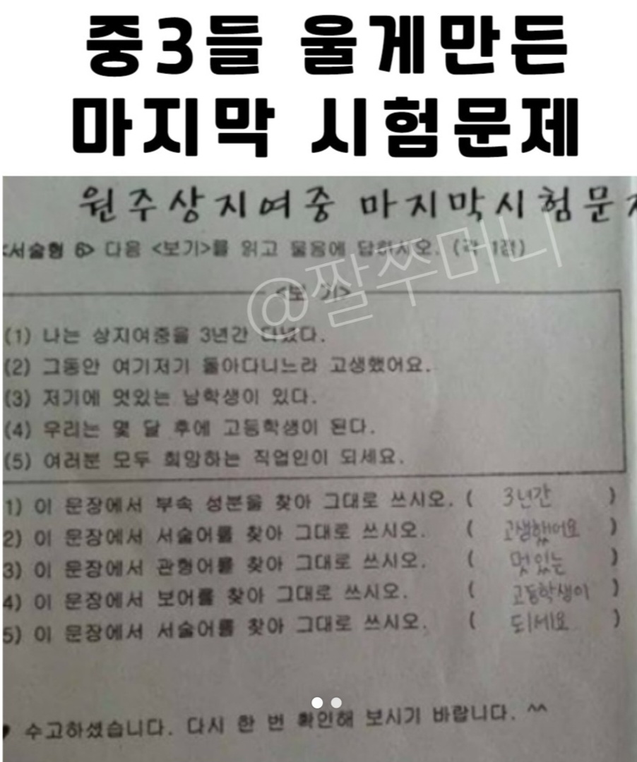 작성시간 23.12.04 졸업생 : ㅋㅋ 마지막문제 선생님은 언제나 너를 응원할게 임 시간투자 ㄴㄴ