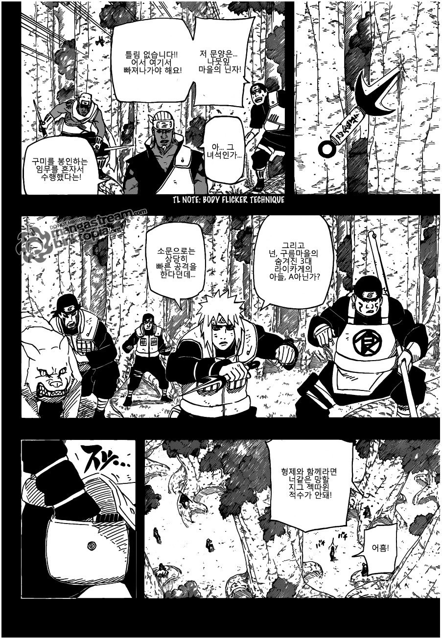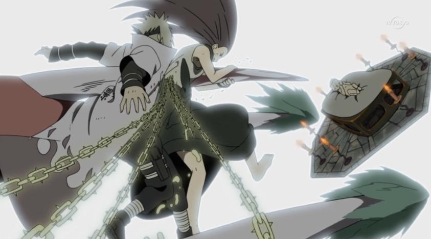 - 2대호카게를 죽인 킨긴형제이후 최강콤비(4대라이카게+킬러비 형제) 혼자 압도하는 모습보여줌.
