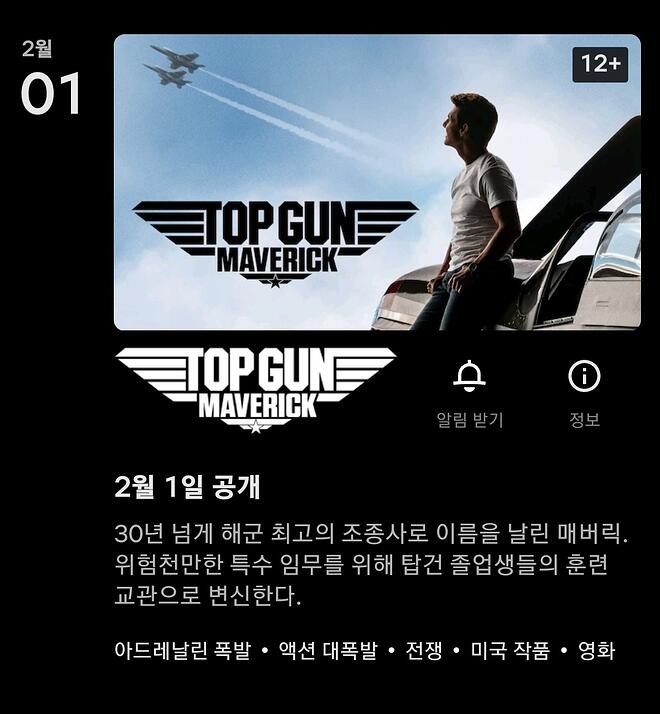 도탁스 (DOTAX) [넷플릭스] 탑건 : 매버릭 2월 1일 공개 예정 작성시간24.01.16|조회수9,392 목록 댓글 7 글자크기 작게가 글자크기 크게가 다음검색 현재 게시글 추가 기능 열기 북마크 공유하기 신고 센터로 신고 댓글 7 댓글 리스트 작성시간 24.01.16 오예 기다렸었는데 작성시간 24.01.16 이미 외국은 작년부터 보고있었음ㅋㅋㅋ 작성시간 24.01.16 아드레날린 폭발 ㅋㅋㅋㅋ ㅇㅈ 작성시간 24.01.16 오 또봐야지 작성시간 24.01.16 티빙으로 이미 몇번을 더 봄 ㅋㅋㅋㅋㅋㅋㅋ 카페 방문해 더 많은 댓글 만나기!