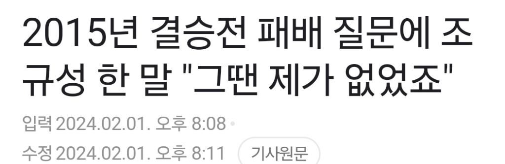 2015년 결승전 패배 질문에 조규성 한 말 "그땐 제가 없었죠" 작성자NO.41 Declan Rice|작성시간24.02.01|조회수5,049 목록 댓글 26 글자크기 작게가 글자크기 크게가 키야 인터뷰 맛있다 ㅋㅋㅋㅋㅋㅋㅋ주인공 되보자고~ 다음검색 현재 게시글 추가 기능 열기 북마크 공유하기 신고 센터로 신고 댓글 댓글 26 댓글쓰기 답글쓰기 댓글 리스트 작성자벌써 2034년 | 작성시간 24.02.01 얼굴에 점이 엄청 많구나 몰랐네 작성자어떤 날 | 작성시간 24.02.01 호주 전에 잘하자 작성자수원 KT 소닉붐 | 작성시간 24.02.01 질하자 작성자천재 | 작성시간 24.02.01 패기 조아 작성자Candyholic | 작성시간 24.02.01 이런 자신감은 넘 좋지 경기장에서도 보여줘라 댓글 전체보기