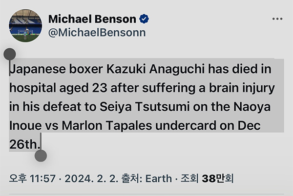 오늘 향년 23세의 나이로 안타깝게 사망..