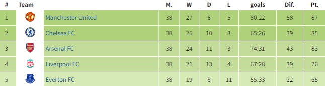 마지막 4경기를 전부 승리했지만 맨유와 첼시 역시 연승을 기록하며, 순위에 변화를 줄 순 없었고 그렇게 3위로 시즌을 마무리 하게 된다.