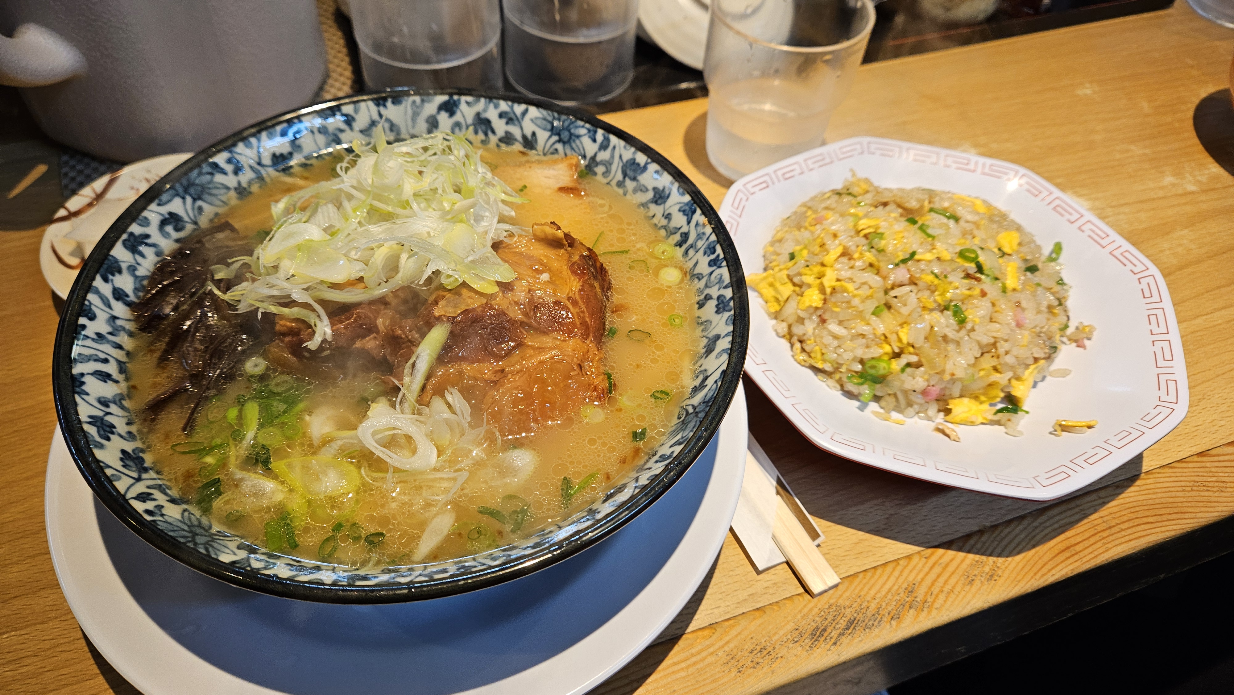 돈코츠라멘에 볶음밥은 반접시로 추가했는데