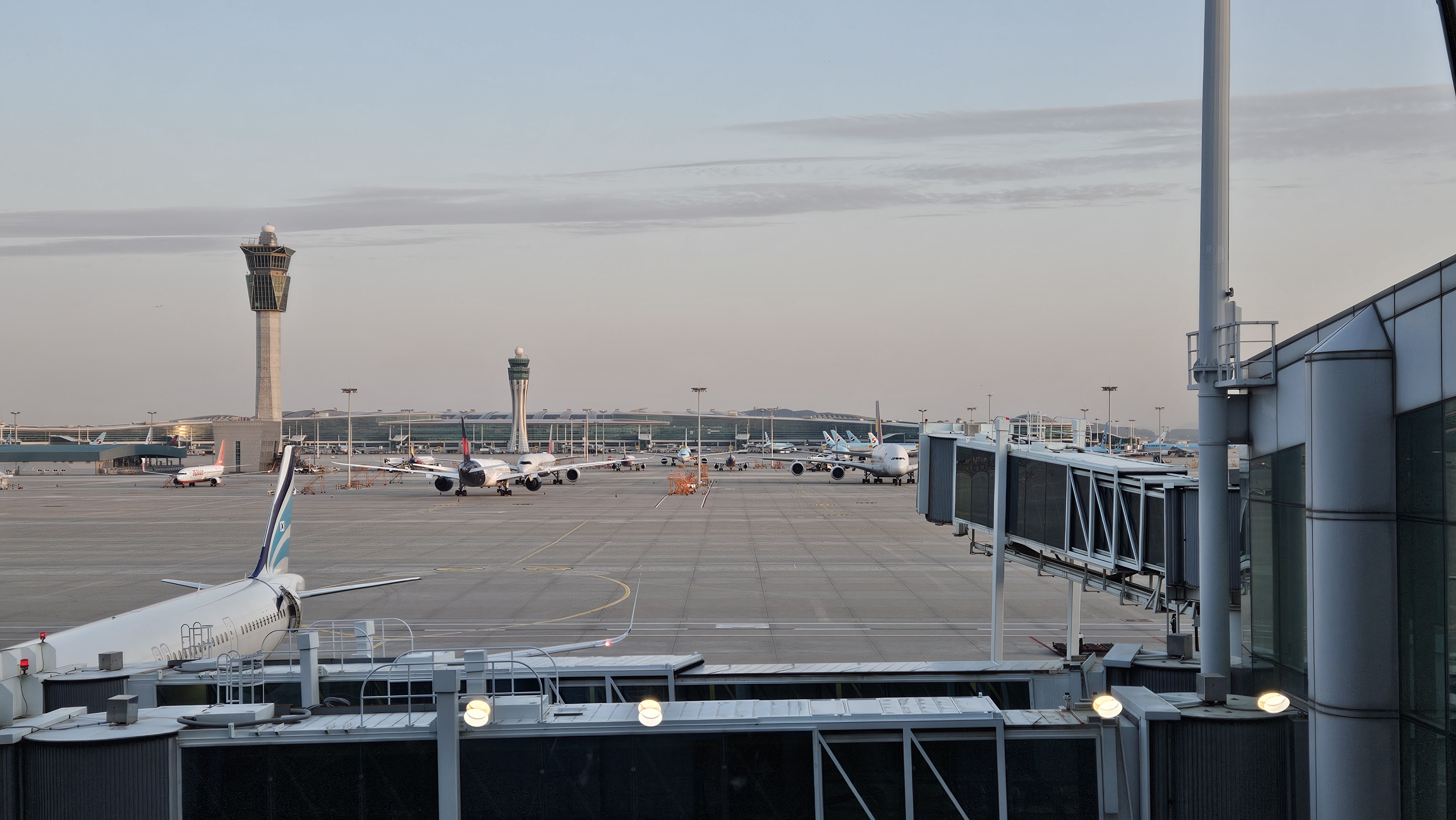 원래 좀 어둑어둑했는데 이륙시간 다가오니 해가 떴네요