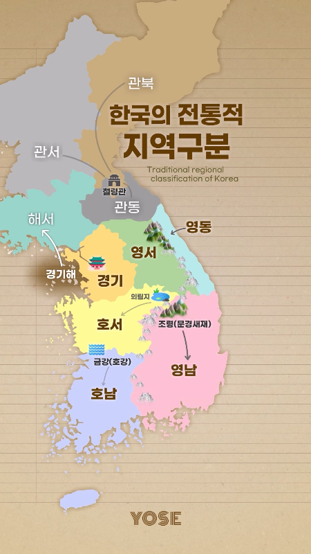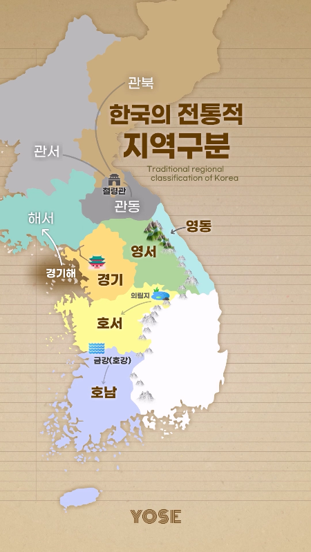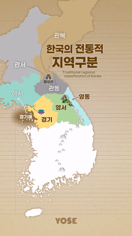 서쪽은 관서, 북쪽은 관북, 동쪽은 관동