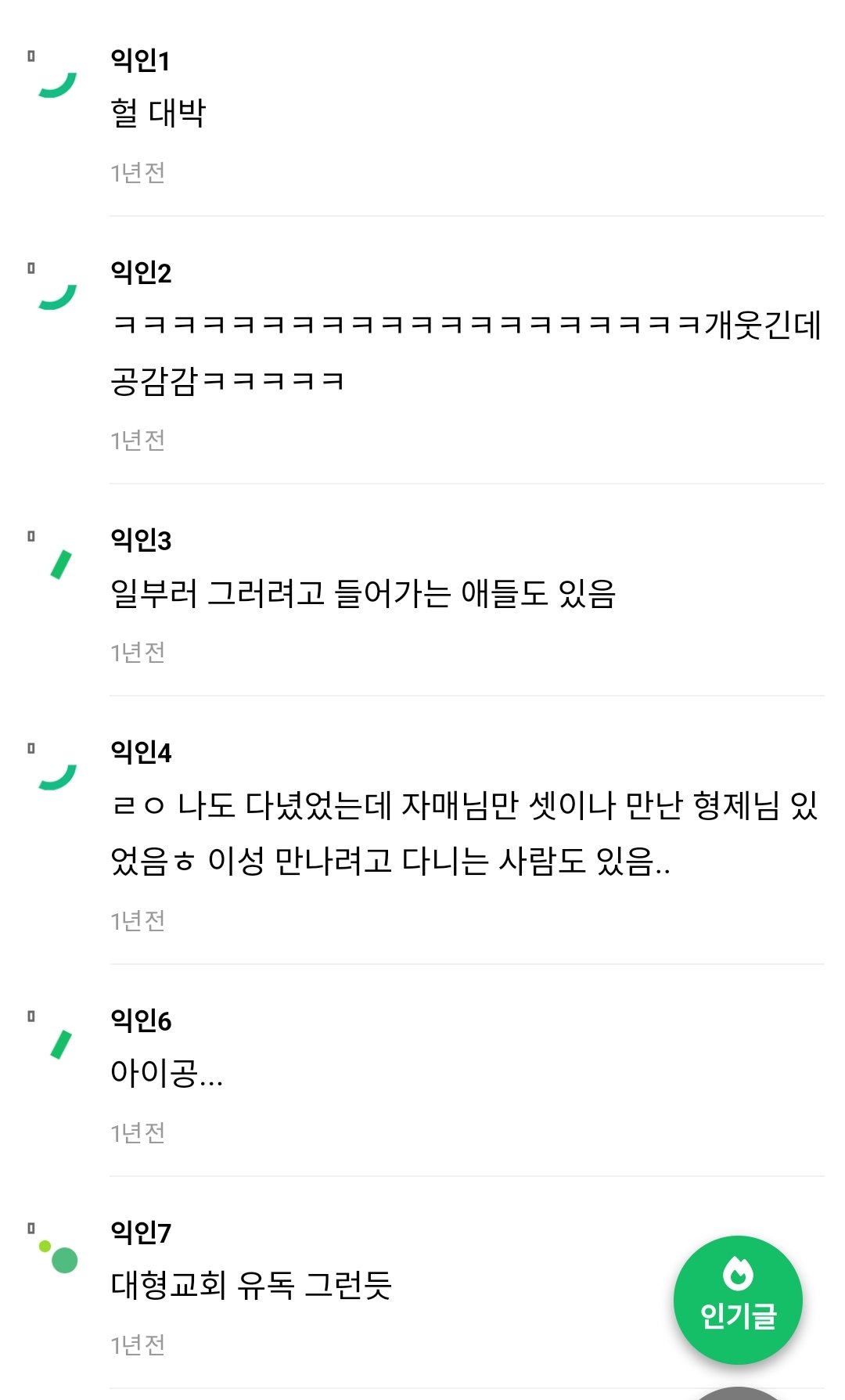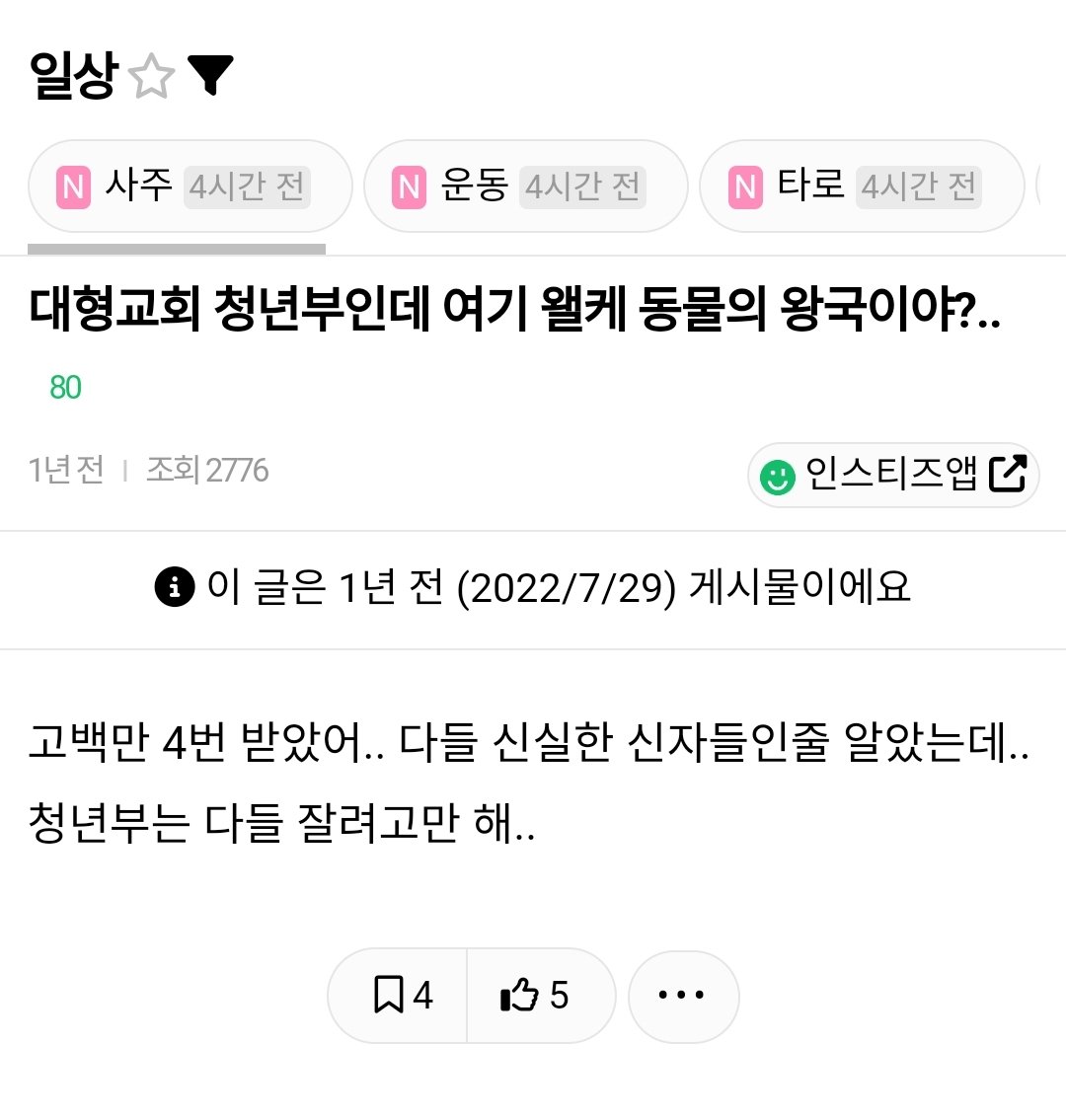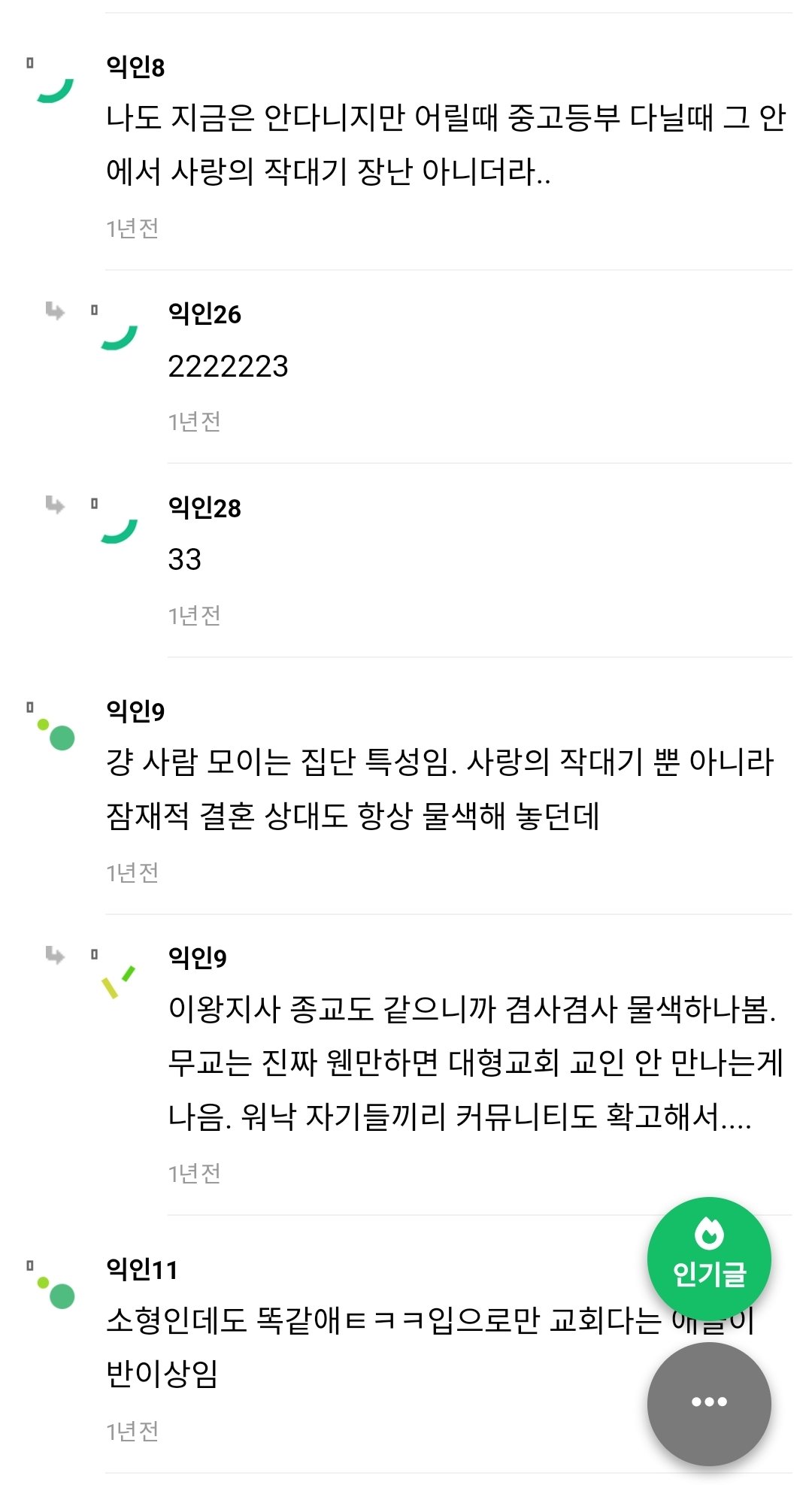 대형교회 청년부인데 여기 왤케 동물의 왕국이야? 작성자롱터우|작성시간24.05.22|조회수7,314 목록 댓글 23 글자크기 작게가 글자크기 크게가 다음검색 현재 게시글 추가 기능 열기 북마크 공유하기 신고 센터로 신고 댓글 댓글 23 댓글쓰기 답글쓰기 댓글 리스트 작성자YelloWStaR | 작성시간 24.05.22 지린다미어... 작성자에드워드 | 작성시간 24.05.22 대형교회는 전혀 안믿는거같은 애들도 많으니까... 작성자클린이 | 작성시간 24.05.22 우리는 안그렇다 = 나한테 사랑의 작대기가 안왔을 뿐이다 작성자Lifeis | 작성시간 24.05.22 종교든 학교든 동아리든 알바든... 다 똑같음 작성자후루루까꿍 | 작성시간 24.05.23 주작도 가지가지 댓글 전체보기