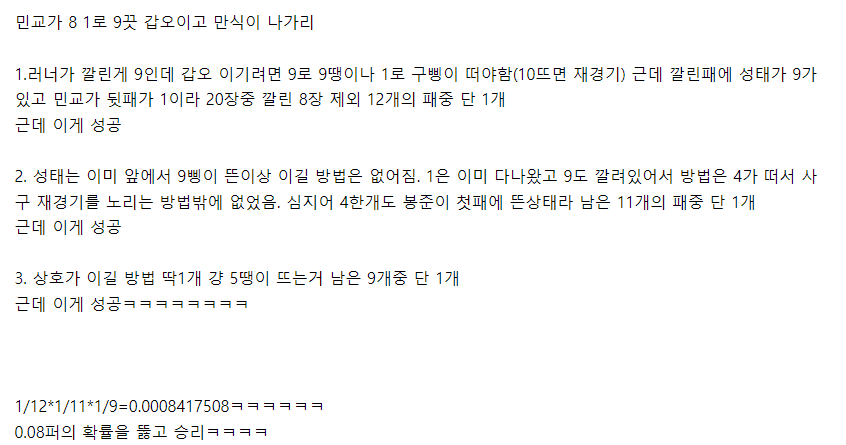 마지막을 향해 달리던 중 제일 큰 판이 열림
