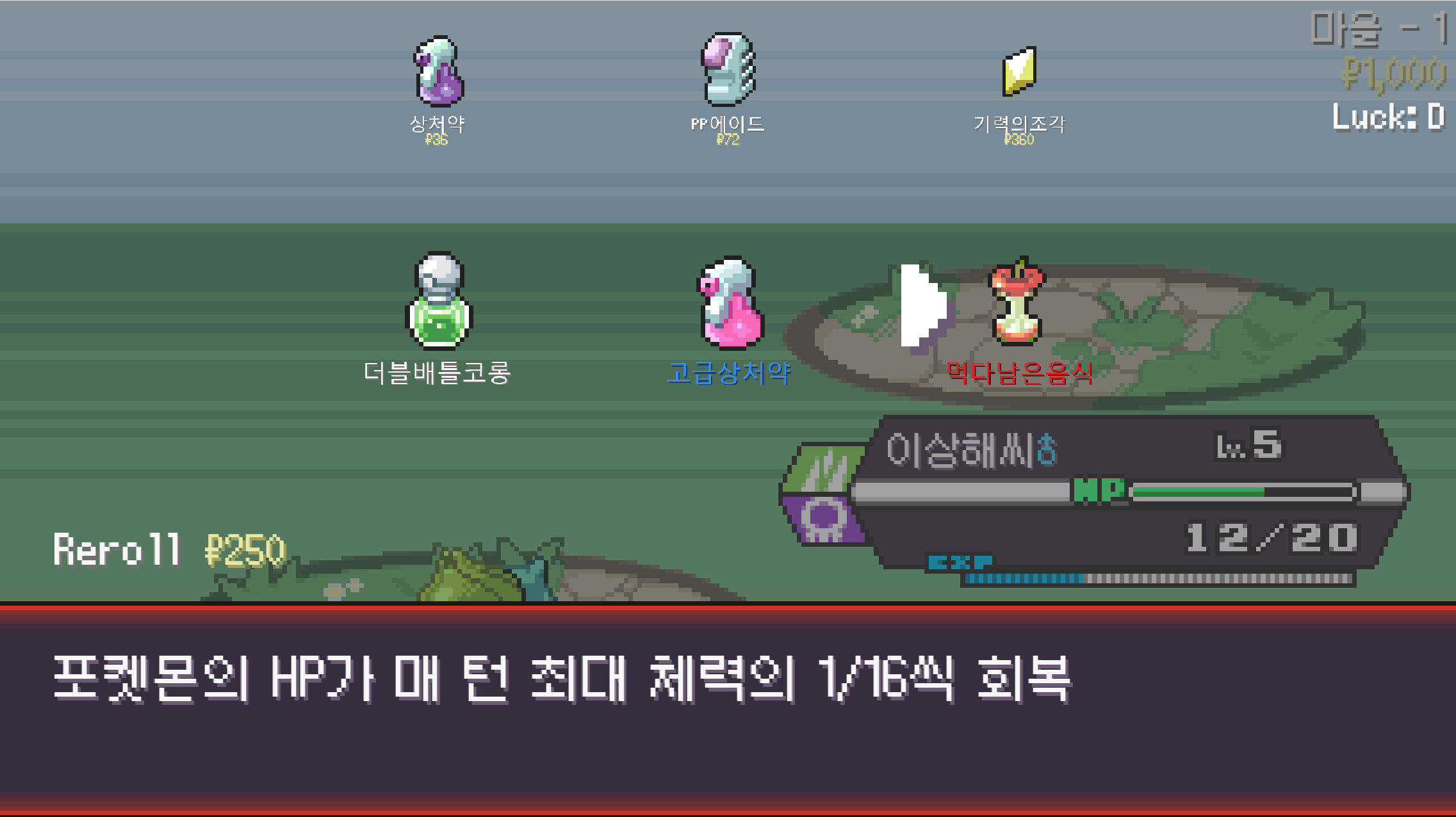 포켓몬스터 + 로그라이크를 합친 게임입니다.