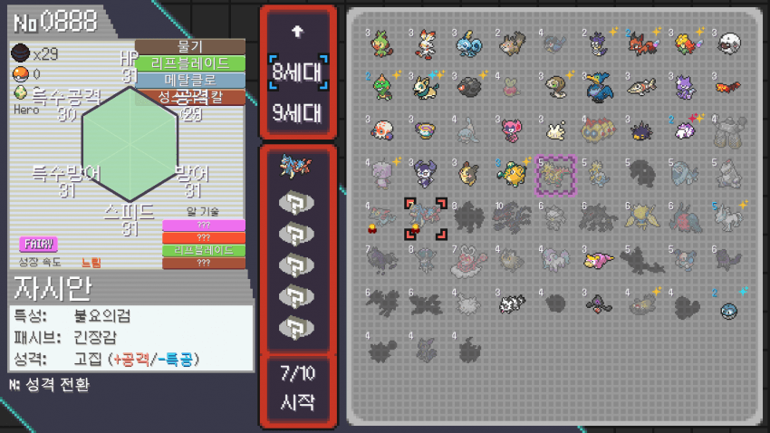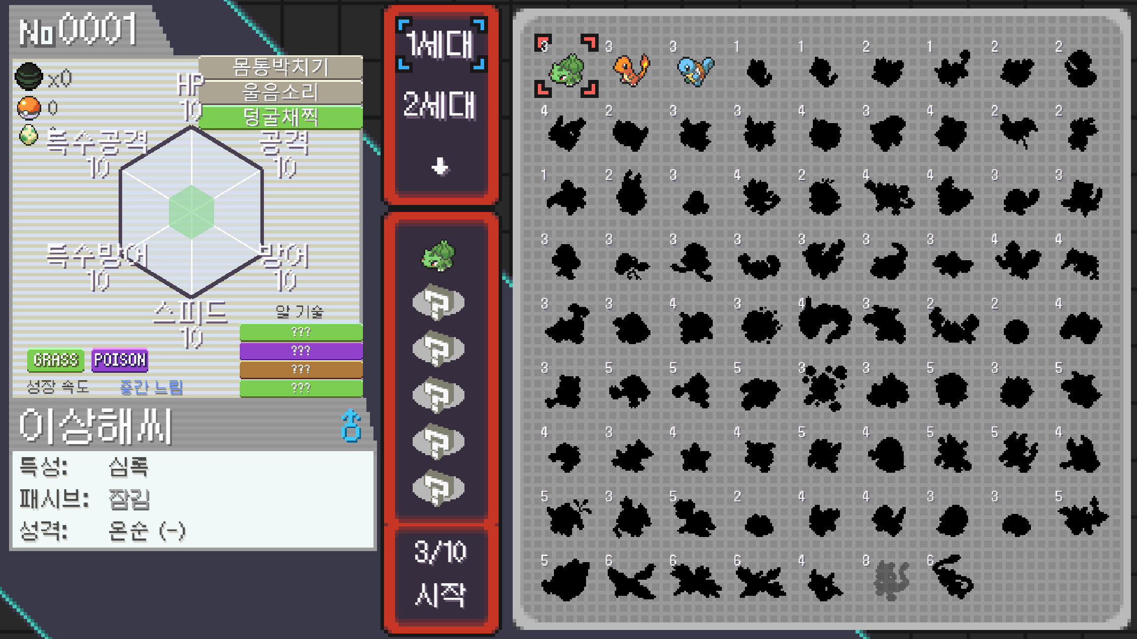 알을 까거나 포켓몬을 포획해서 더 높은 능력치의 포켓몬을 찾는다면 다음 게임스타팅에 반영이 되어 좀 더 높은 층을 노릴 수 있습니다.