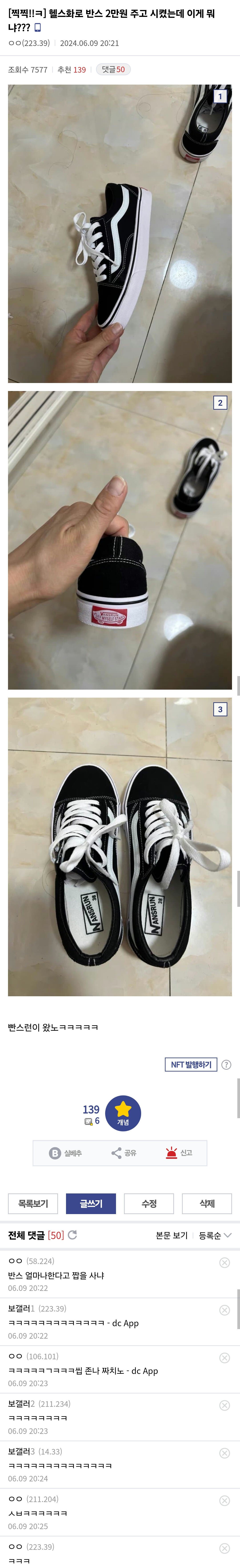 2만원짜리 반스 운동화를 산 사람 작성자아향기2|작성시간24.06.11|조회수4,400 목록 댓글 5 글자크기 작게가 글자크기 크게가 다음검색 현재 게시글 추가 기능 열기 북마크 공유하기 신고 센터로 신고 댓글 댓글 5 댓글쓰기 답글쓰기 댓글 리스트 작성자핫소스따가워 | 작성시간 24.06.11 오히려좋아 작성자까슈 | 작성시간 24.06.11 반스런ㅋㅋㅋㅋㅋㅋㅋ 작성자Coca-Cola | 작성시간 24.06.11 유니크하잖앙 작성자별을보는아이 | 작성시간 24.06.11 ㅋㅋㅋㅋㅋㅋㅋㅋㅋㅋ 작성자모티프 | 작성시간 24.06.11 빤스런 ㅋㅋㅋ 댓글 전체보기