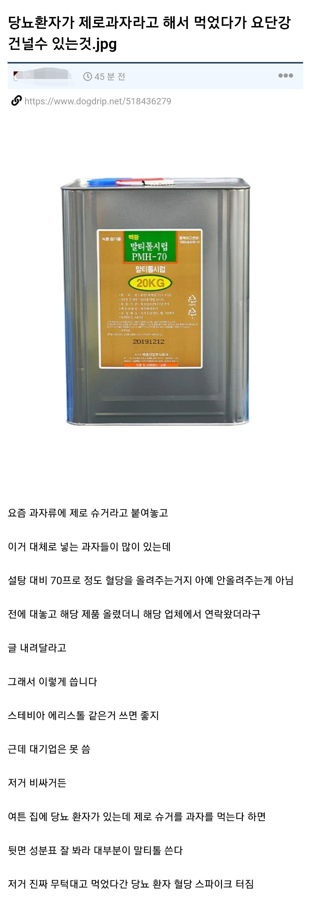 작성시간 24.06.14 70퍼면 그냥 설탕이잖아 시발 ㅋㅋ 말장난치네
