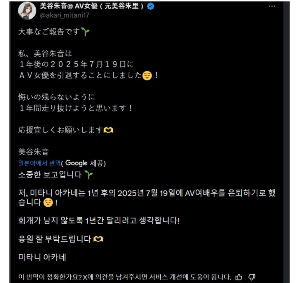미타니 아카리 내년 7월까지 활동후 은퇴 작성자zubai|작성시간24.07.05|조회수5,465 목록 댓글 16 글자크기 작게가 글자크기 크게가 1년 바짝 벌고은퇴하려는듯 다음검색 현재 게시글 추가 기능 열기 북마크 공유하기 신고 센터로 신고 댓글 댓글 16 댓글쓰기 답글쓰기 댓글 리스트 작성자미타니아카리 | 작성시간 24.07.05 1년 동안 ㅅㅅ 작성자#menow | 작성시간 24.07.05 올해 7월도 아니고 내년 7월 ㅋㅋ 작성자유부육아가사노예 | 작성시간 24.07.05 은퇴한배우들 다들뭐함 작성자핵도창 | 작성시간 24.07.06 진짜 머신인데 ㅠ 작성자와룡승천2 | 작성시간 24.07.06 ㅜㅜ 댓글 전체보기