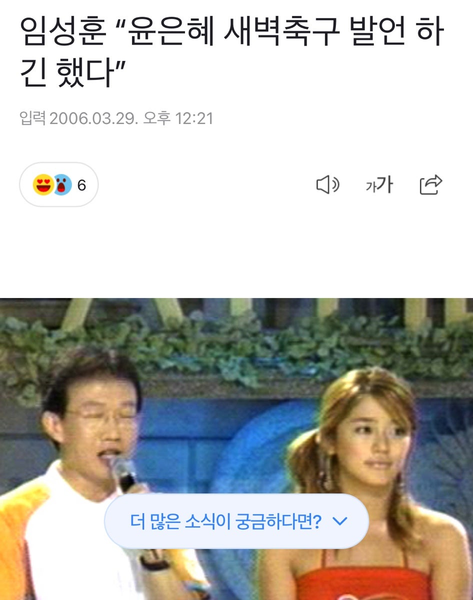 당시 이슈였던 시기에 김용만이 윤은혜에게 새벽축구 드립을 언급하자 무안하게 웃는 모습에 자료가 있는데,