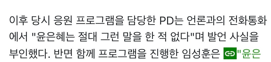 당시 담당pd도 윤은혜는 그 발언을 한적이 없다고 부정하였고,