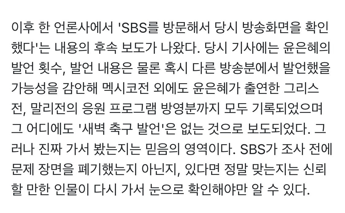 후속보도에서도 새벽축구발언은 없다고 말함.