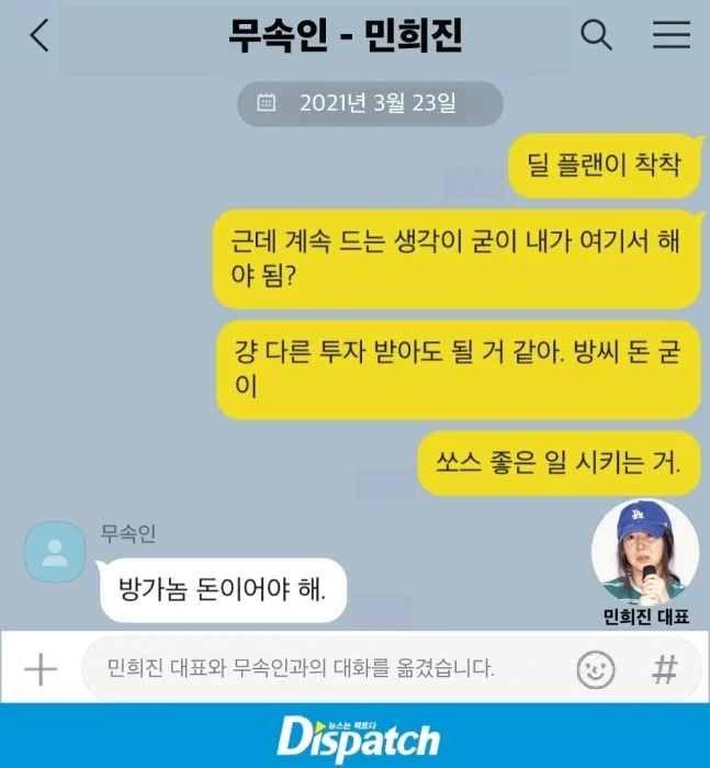 작성시간 24.07.23 뉴진스팬들도 민희진이랑 뉴진스랑 분리해놔야지 계속 자꾸 같이 엮으려고 하고 있는데 나중에 결과 어떻게 나올지도 모르는데 같이 엮이다가 결과 안좋으면 둘다 나락갈수 있음 분리해놔야 나중에 결과가 안좋아도 뉴진스는 피해를 덜 받을 수 있는데 같이 묶이면 둘다 이미지 타격 엄청 심해질수있음 잘 생각해야 함