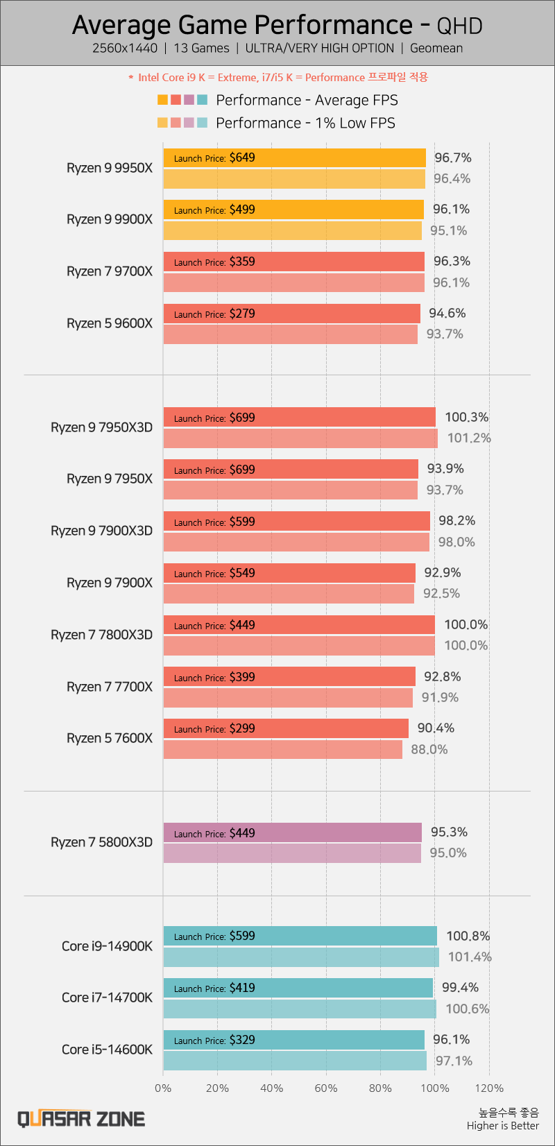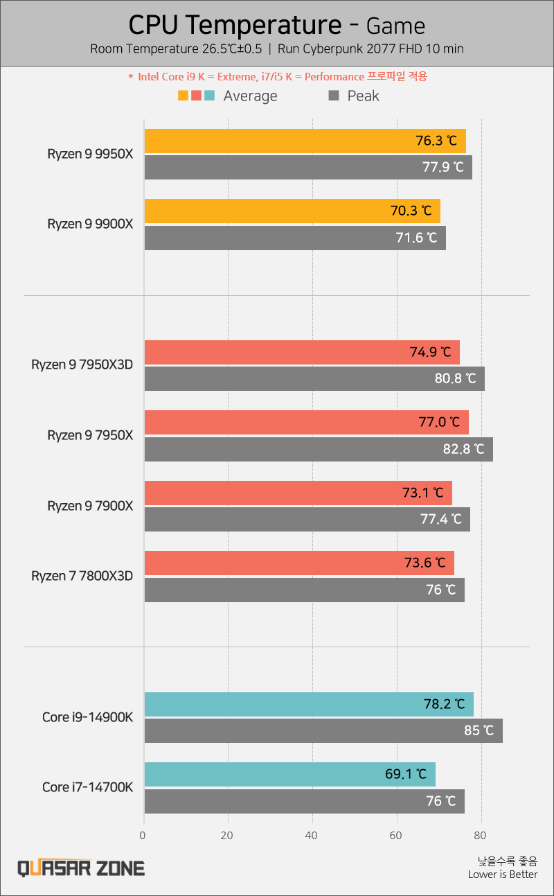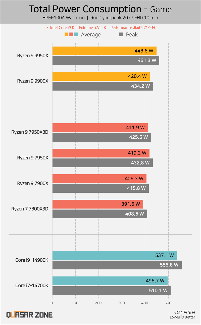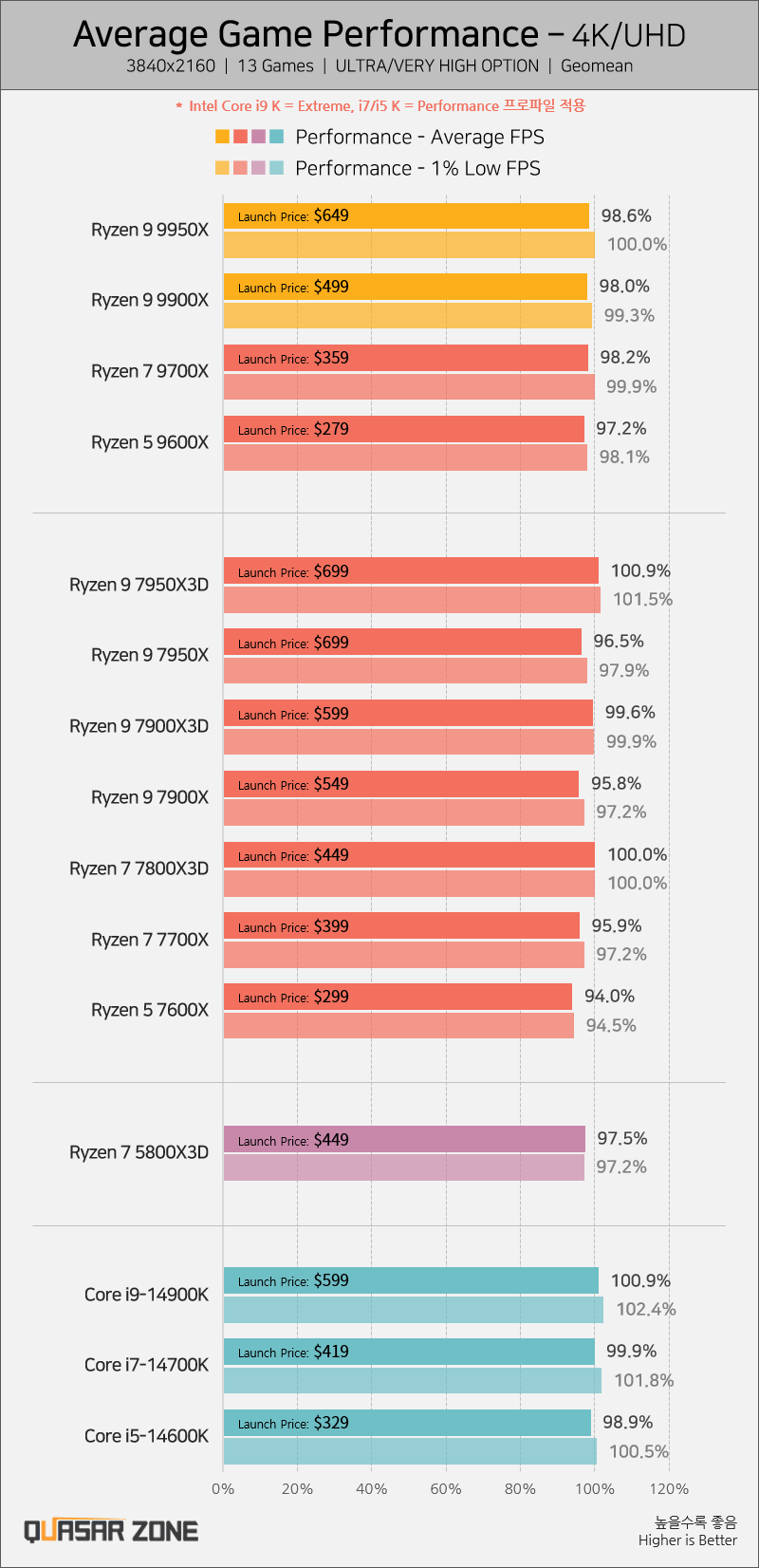 게임에서는 9950X, 9900X 모두 소폭 하락