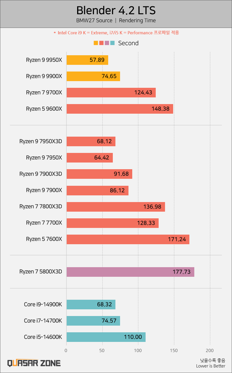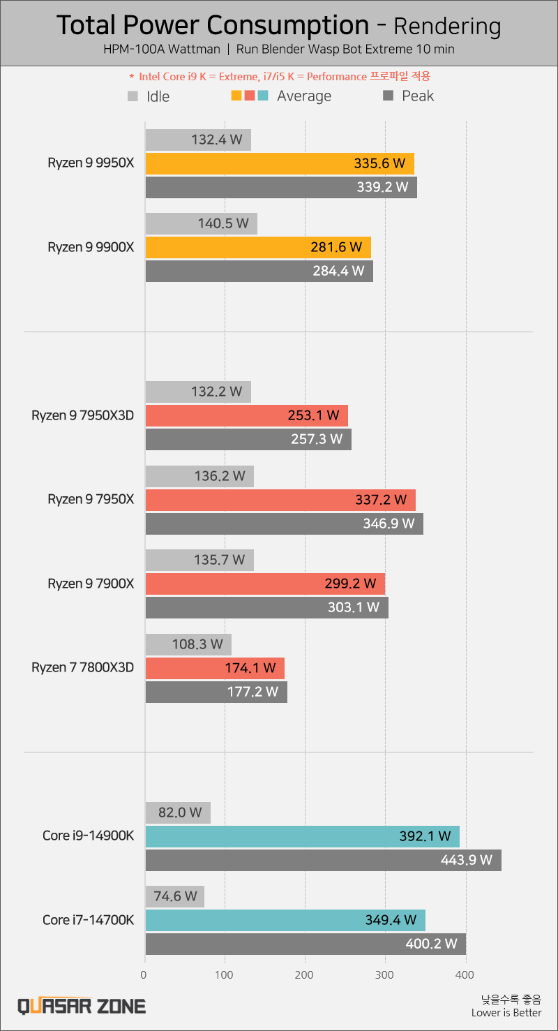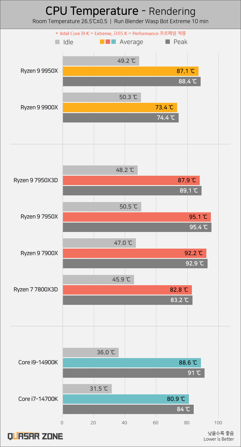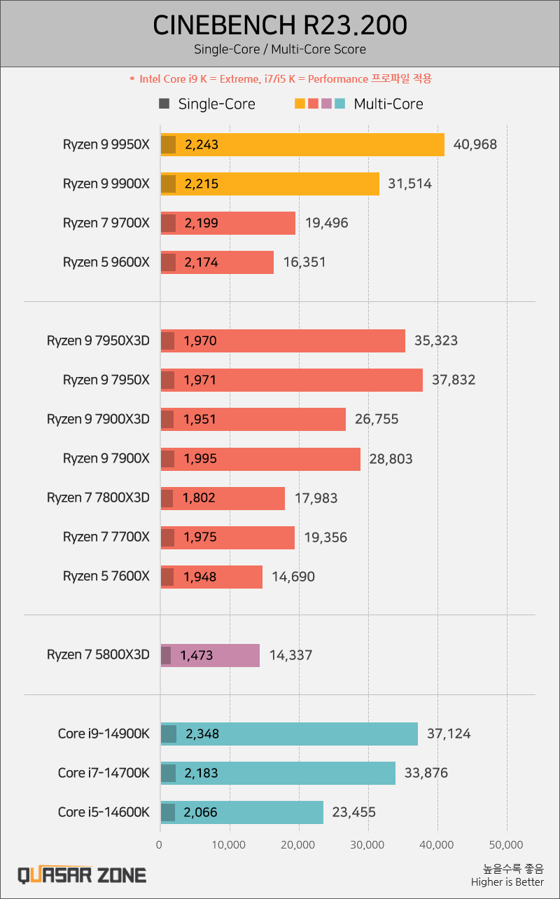 게임에서는 9950X, 9900X 모두 소폭 하락