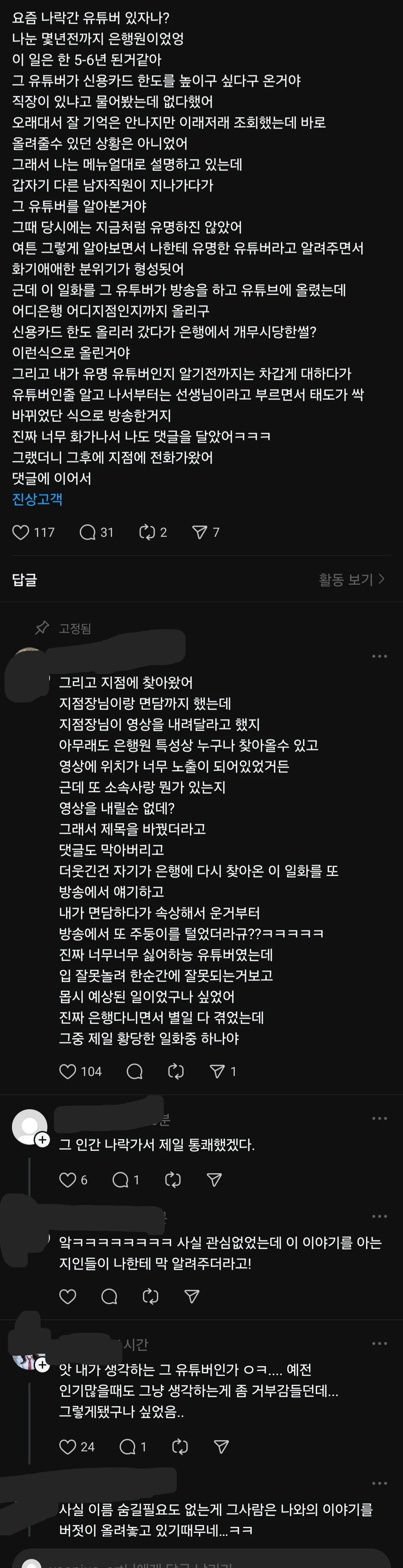 작성시간 24.08.22 은행원이란 사람 맞춤법 봐라 아오ㅋㅋㅋㅋ오래대서는 씹ㅋㅋㅋ