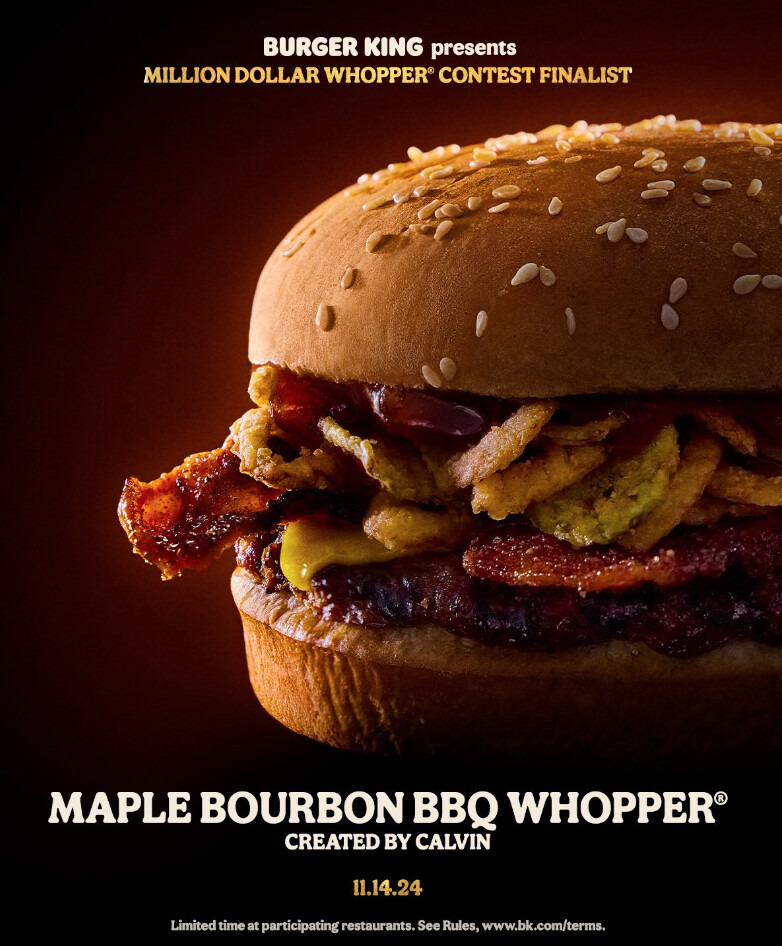 소고기 패티 베이스에 메이플 버번 소스, 메이플 베이컨 시즈닝이 특징