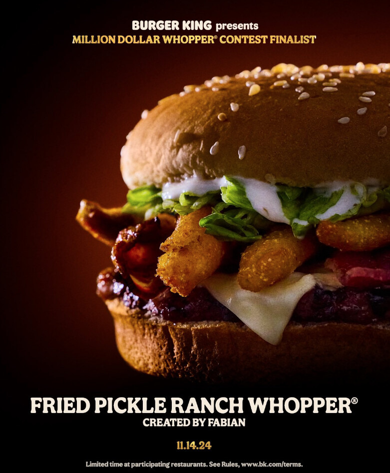 소고기 패티 베이스에 튀긴 피클, 렌치소스가 특징