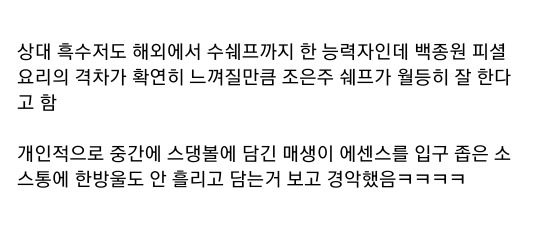 작성시간 24.10.03 개인유튜브 취미로 하셔도 잘되실거 같은데. 고우신데다가 목소리 좋고 요리 그냥 잘하는 수준 아닌데다가 심지어 정갈하게 하시고 플레이팅 기가 막히시고