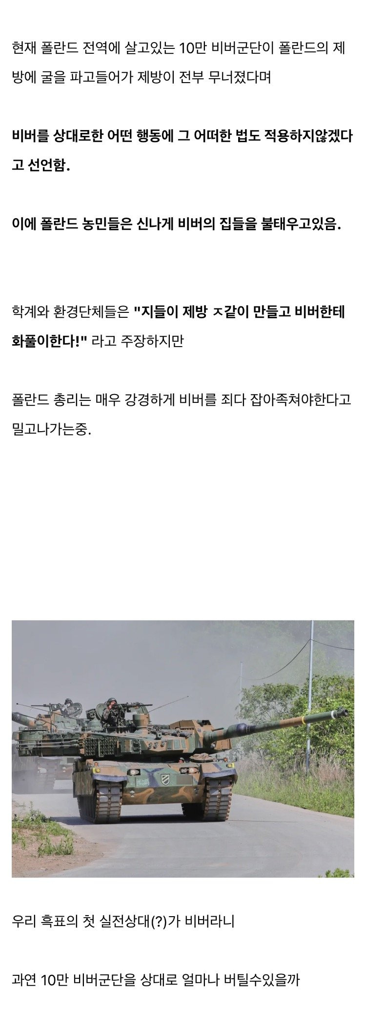 지금 전쟁중이라는 폴란드 근황 작성자이시연|작성시간24.10.06|조회수6,987 목록 댓글 9 글자크기 작게가 글자크기 크게가 다음검색 현재 게시글 추가 기능 열기 북마크 공유하기 신고 센터로 신고 댓글 댓글 9 댓글쓰기 답글쓰기 댓글 리스트 작성자아니시에이팅 | 작성시간 24.10.06 오 작성자오츠키 히비키 | 작성시간 24.10.06 니들 지면 호주처럼 돌려진다 작성자카냥이 | 작성시간 24.10.06 작성자트웬티 | 작성시간 24.10.06 콘크리트로 제방만들면 해결인데 그놈의 환경 타령하면서 콘크리트는 안쓰는고 비버를 잡는 그저 코메디 괜히 유럽이 ㅈ망하고 있는게 아님 작성자홍수몬 | 작성시간 24.10.06 어떻게 댐을 흙으로 만들어 ㅋㅋ 유럽 진짜 신기함 댓글 전체보기