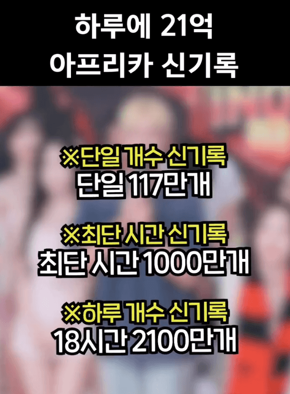 요약:하루 방송에서 2100만개 터짐(21억)