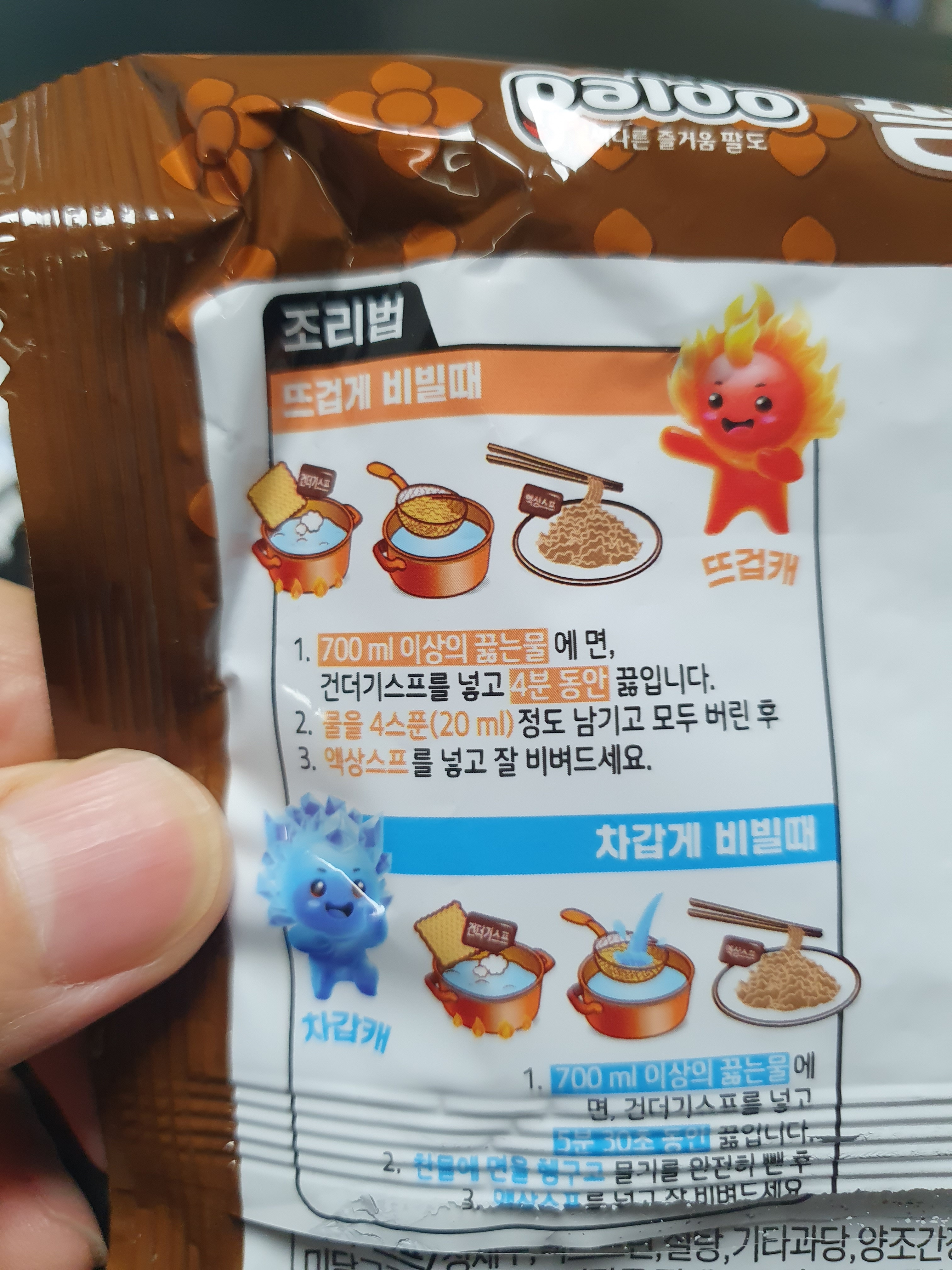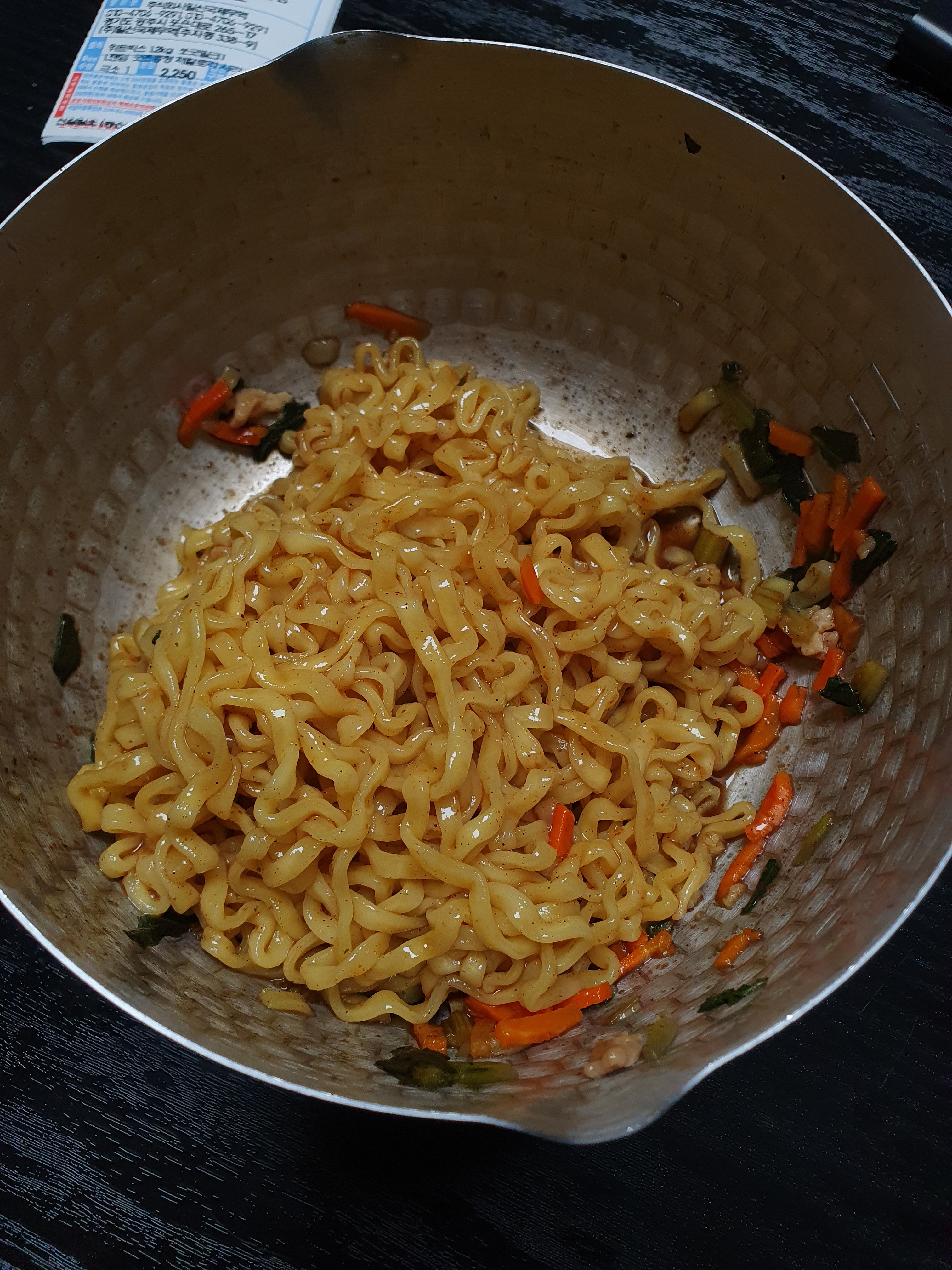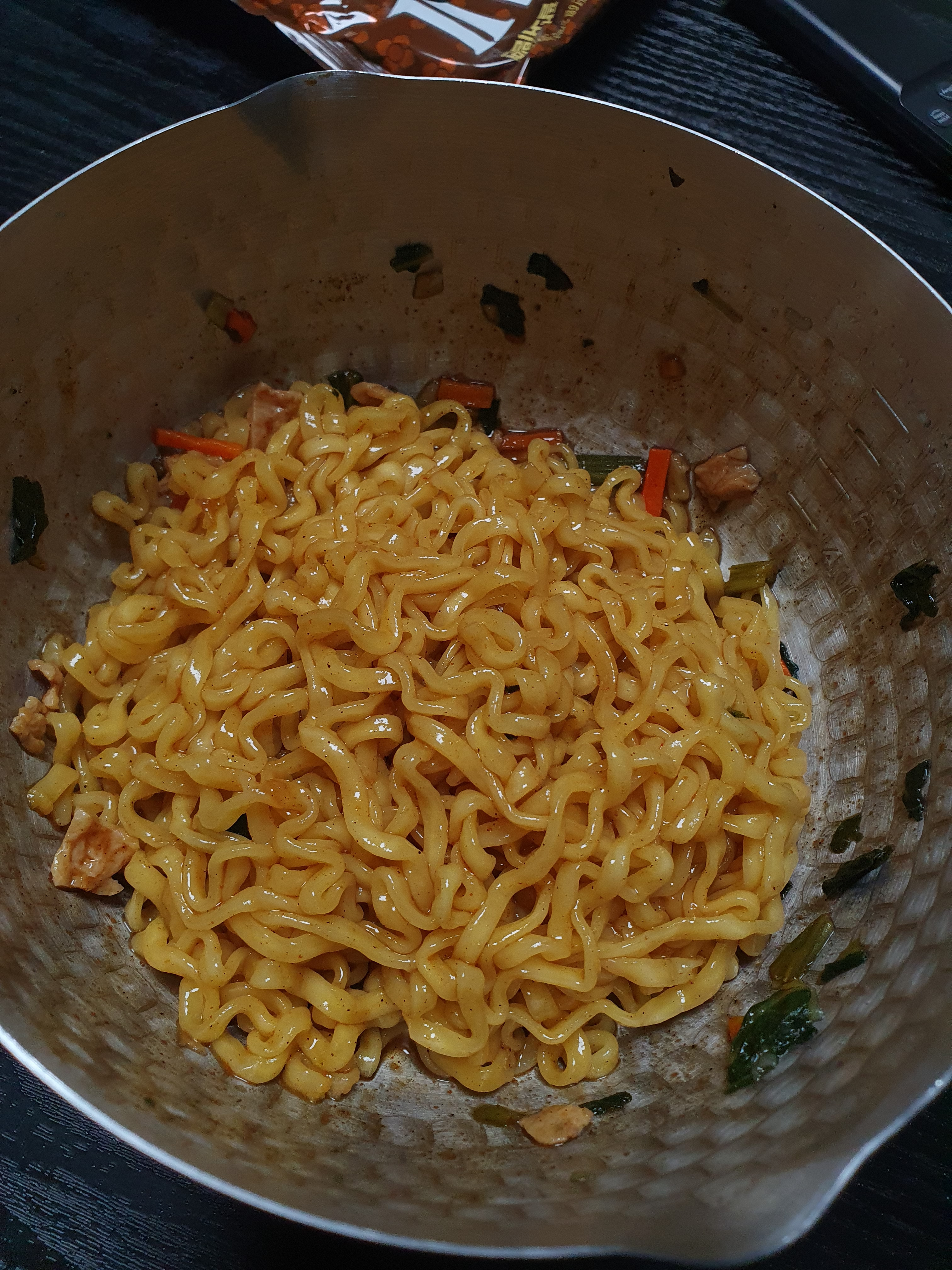비빔면이 언제나 그렇듯이 순식간에 흡입하고 (그래도 못 먹을 만큼 노맛은 아니었음) 차게 먹어서 맛이 없는건가해서 바로 한봉 또 뜯어서 뜨겁게 먹어보았습니다.