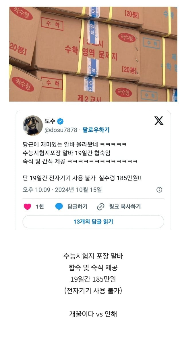 CAFE 당근에 올라왔다는 수능시험지 포장 알바 급여 수준 도탁스 (DOTAX) 작성시간24.10.16 앱으로보기 카페방문 댓글 37 현재 게시글 추가 기능 열기 공유하기 신고 센터로 신고