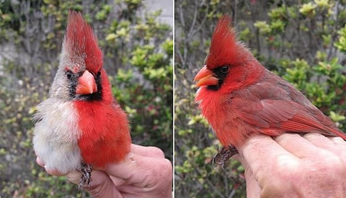 이렇게 한 몸에 암수 부분이 혼재해있는건 곤충에선 상대적으로 흔하지만 새한테서 발견되는 일은 매우 매우 드물다고 함