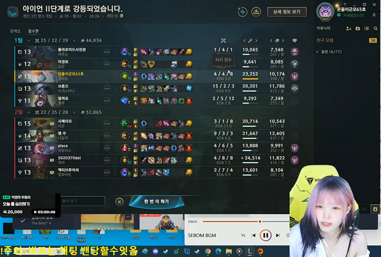 작성시간 24.10.30 미모를 얻고 롤을 잃었네ㅠㅠㅠㅠ한때 실버수문장 아녔나ㅠㅠ