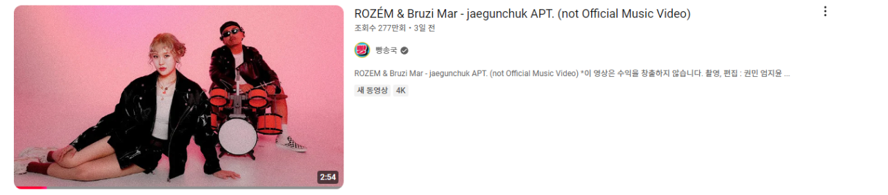 얼마전에 아파트 패러디 영상으로 핫했던 빵송국 영상