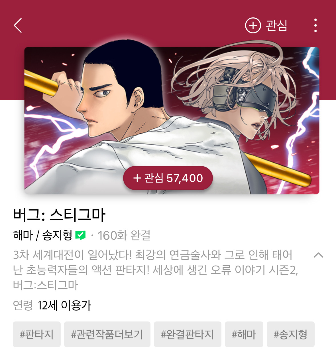 명작인데 사람들이 잘 모를 것 같은 완결웹툰 1 작성자그을린그림자|작성시간24.11.15|조회수15,947 목록 댓글 48 글자크기 작게가 글자크기 크게가 네이버웹툰 버그:스티그마줄거리 : 세상에 발생한 버그현상을 이용해 인류를 지배하려는 자와 저지하는 자의 대립스토리, 작화, 연출 모두 완벽함아쉬운 점 : 초반 별점, 댓글 박살나있음 다음검색 현재 게시글 추가 기능 열기 북마크 공유하기 신고 센터로 신고 댓글 댓글 48 댓글쓰기 답글쓰기 댓글 리스트 작성자rltodcnd | 작성시간 24.11.15 웹툰 ㄷㄱㄷㄱ 작성자부럭 | 작성시간 24.11.15 ㄷㄱ 작성자할수이따 | 작성시간 24.11.16 ㄷㄱ 작성자Steven.Gerrard | 작성시간 24.11.16 ㄷㄱ 작성자Granita | 작성시간 24.11.20 ㄷㄱ 댓글 전체보기