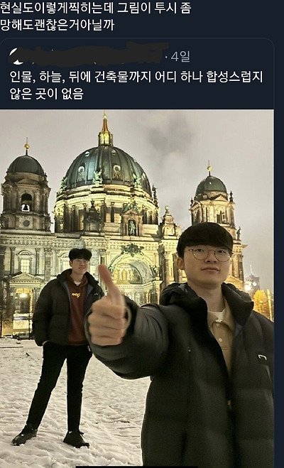 도탁스 (DOTAX) 페이커는 사진이 왜 이렇게 찍히는 거지..? 작성시간24.11.21|조회수18,882 목록 댓글 26 글자크기 작게가 글자크기 크게가 다음검색 현재 게시글 추가 기능 열기 북마크 공유하기 신고 센터로 신고 댓글 26 댓글 리스트 작성시간 24.11.21 막짤뭐야 ㅋㅋㅋㅋ 작성시간 24.11.21 감히 신의 모습을 카메라에 담으려 한 죄..페-맨 작성시간 24.11.21 전부 다 합성 같앜ㅋㅋㅋㅋㅋㅋㅋㅋㅋㅋㅋㅋㅋㅋㅋㅋㅋ 작성시간 24.11.21 누끼혁 작성시간 24.11.21 ㅋㅋㅋㅋㅋㅋㅋㅋㅋㅋㅋ 카페 방문해 더 많은 댓글 만나기!
