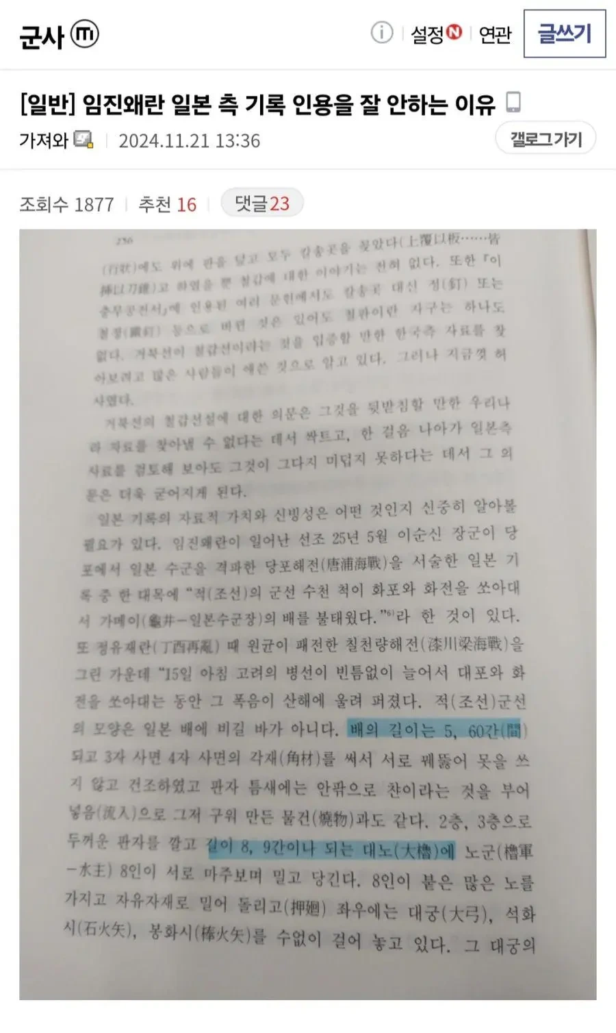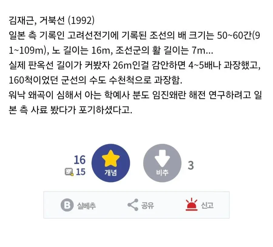 임진왜란 연구에서 일본측 사료 안 보는 이유 작성자가담항설|작성시간24.11.21|조회수3,982 목록 댓글 8 글자크기 작게가 글자크기 크게가 100m 목선에 7m 활 다음검색 현재 게시글 추가 기능 열기 북마크 공유하기 신고 센터로 신고 댓글 댓글 8 댓글쓰기 답글쓰기 댓글 리스트 작성자섭지코지 | 작성시간 24.11.21 7미터짜리 활은 어떻게 들어서 쏘는건데 ㅋㅋㅋㅋㅋ 작성자켄틸레버 | 작성시간 24.11.21 활이 7미터 ㅋㅋㅋㅋㅋㅋㅋㅋㅋㅋㅋ 작성자이지모 | 작성시간 24.11.21 투석기야 활이야? 작성자Nurburgring | 작성시간 24.11.21 무슨 설화를 기록해놨네ㅋㅋㅋ 작성자liverpool0207 | 작성시간 24.11.21 이 시절부터 뭔가 종특이랄까 댓글 전체보기