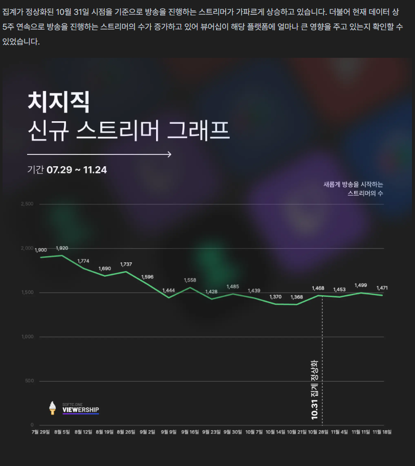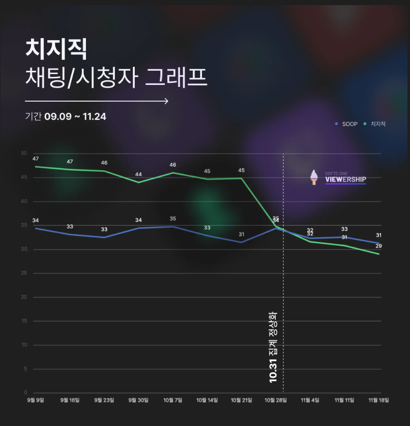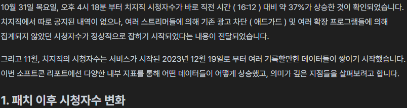 뷰어쉽 정상화 이후 치지직 축제중;