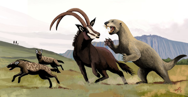 사자와 호랑이 사이즈에 늑대처럼 무리 짓는 육식동물이었음